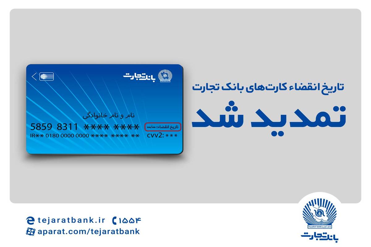 تاریخ انقضای کارت‌های بانک تجارت تمدید شد