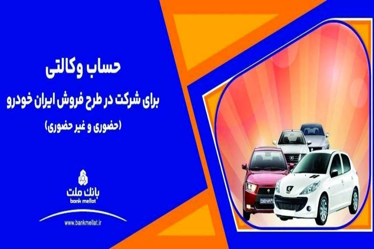 بانک ملت برای دور جدید فروش محصولات شرکت ایران خودرو، خدمت حساب وکالتی را به متقاضیان ارائه می کند.