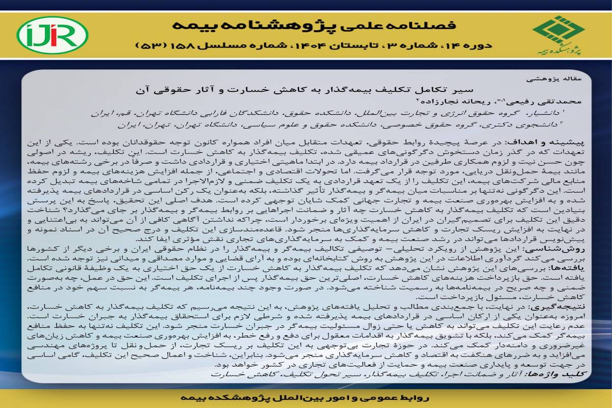 جهت مشاهده مقاله به صفحه فصلنامه پژوهشنامه بیمه در وبسایت پژوهشکده بیمه مراجعه نمایید https://ijir.irc.ac.ir