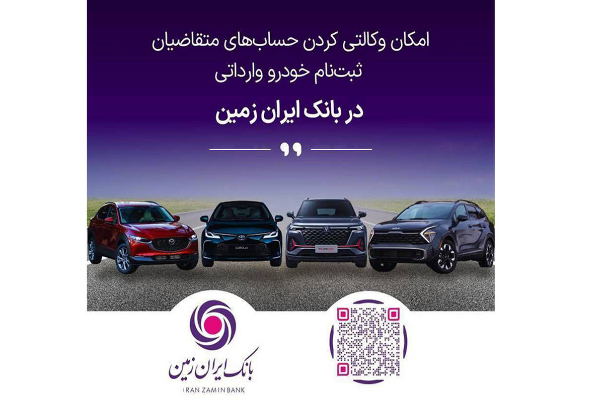 امکان معرفی حساب وکالتی برای ثبت نام خودروهای وارداتی در بانک ایران زمین فراهم است.