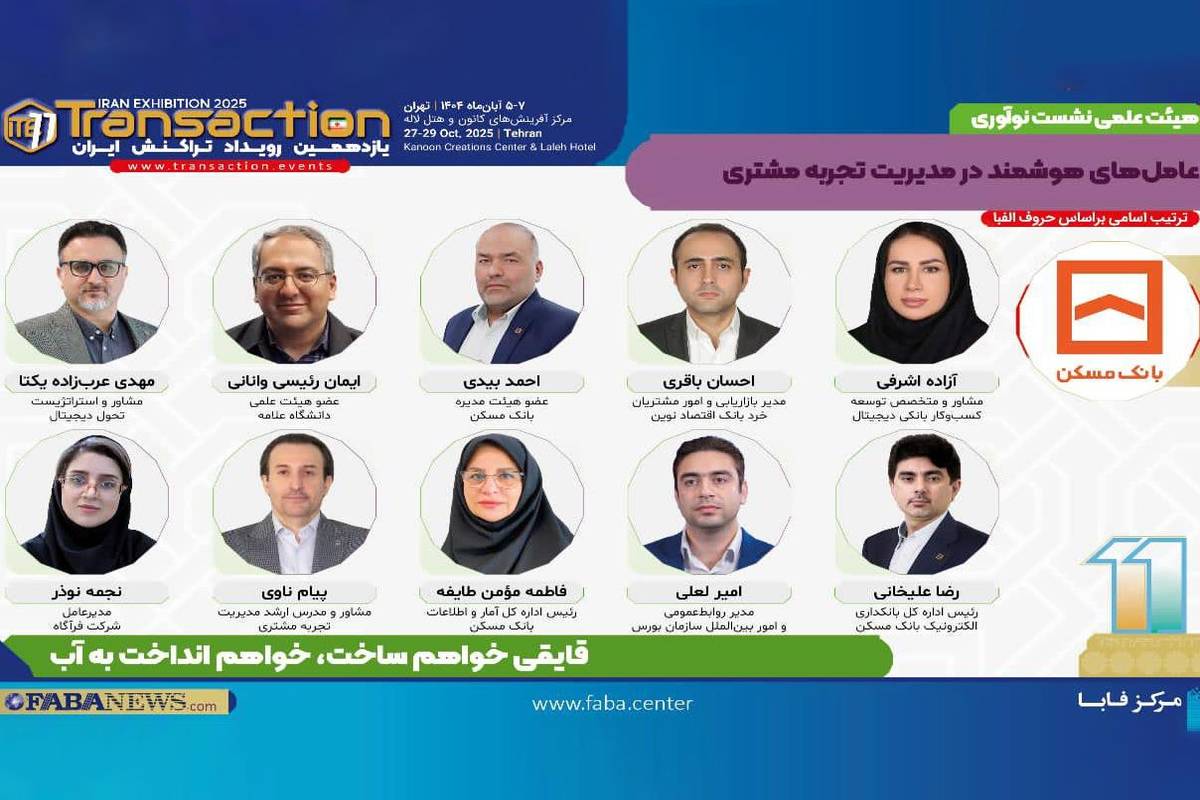 یازدهمین رویداد تراکنش ایران امروز افتتاح می شود/ حضور احمد بیدی عضو هیات مدیره بانک مسکن و سایر مدیران در نشست «عامل‌های هوشمند در مدیریت تجربه مشتری»