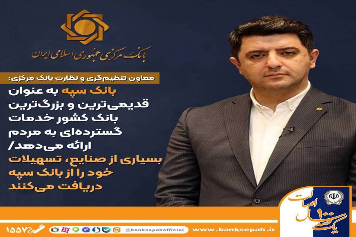 معاون تنظیم‌گری و نظارت بانک مرکزی اعلام کرد: بانک سپه قدیمی‌ترین و بزرگ‌ترین بانک از منظر شعب است و خدمات گسترده‌ای به عموم مردم کشور ارائه می‌دهد و بسیاری از صنایع نیز تسهیلات خود را از این بانک دریافت کرده‌اند.