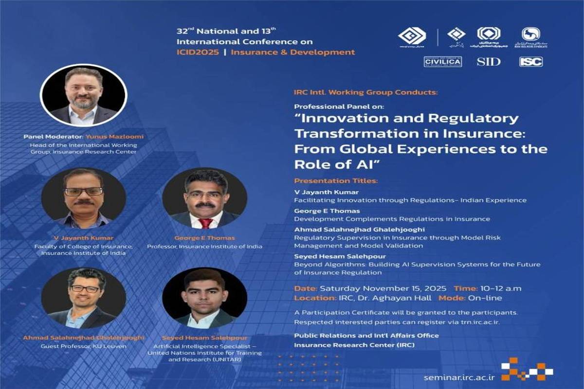 به نقل از روابط عمومی و امور بین‌الملل پژوهشکده بیمه، پنل تخصصی «نوآوری و تحول مقررات‌گذاری در صنعت بیمه؛ از تجربه کشورها تا هوش مصنوعی» از ساعت ۱۰:۰۰ تا ۱۲:۰۰ روز شنبه ۲۴ آبان‌ماه ۱۴۰۴ در سالن دکتر آقایان پژوهشکده بیمه و به‌صورت برخط برگزار خواهد شد.