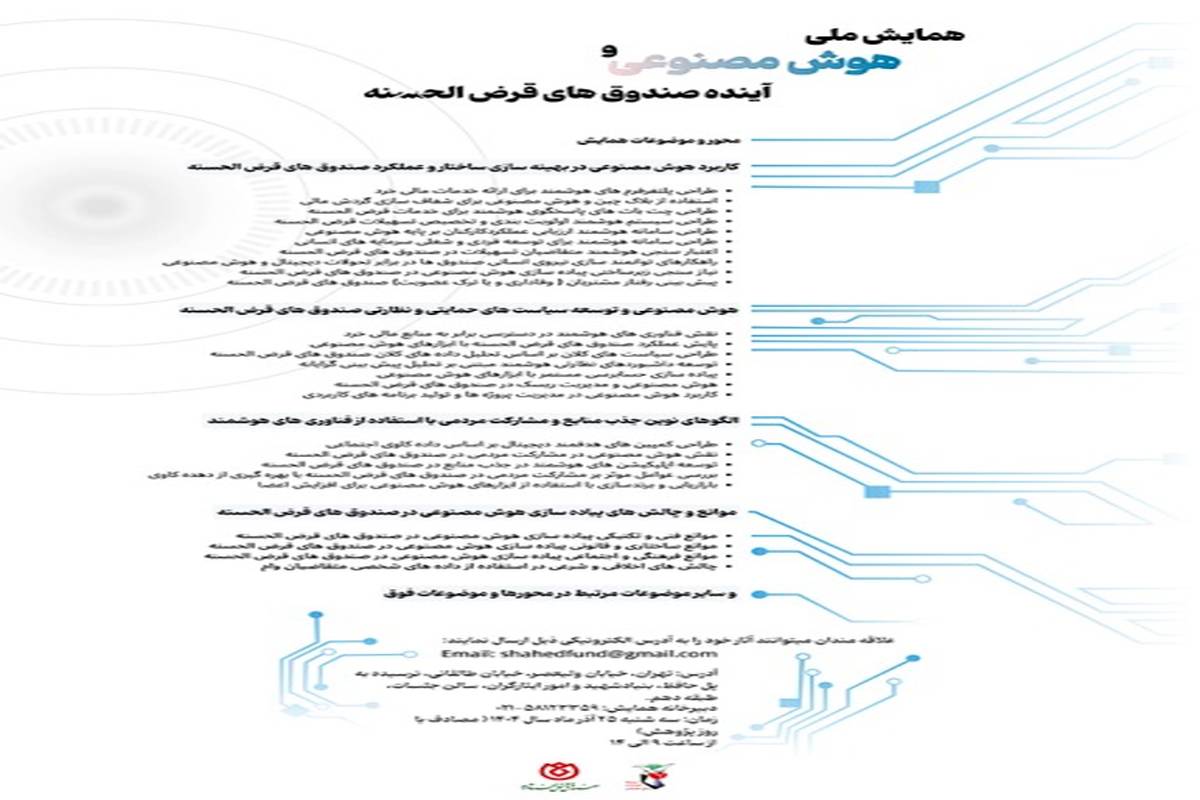 به مناسبت هفته پژوهش و در راستای ارتقای سطح علمی و پژوهشی در حوزههای مختلف (ساختاری، عملکردی، حمایتی- نظارتی) صندوق قرضالحسنه شاهد همایش ملی با عنوان «هوش مصنوعی و آینده صندوقهای قرضالحسنه» در تاریخ سه شنبه ۲۵ آذرماه ۱۴۰۴ برگزار میکند.