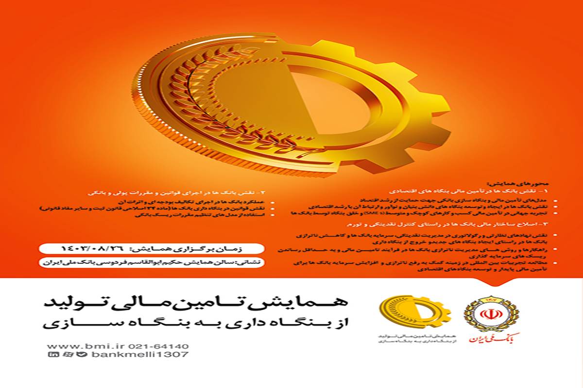 نخستین همایش «تامین مالی تولید؛ از بنگاه داری به بنگاه سازی» با هدف اصلاح نقش بنگاهی بانک ها و حضور مقامات و مسئولان کشوری در ۲۶ آبان ماه سال جاری به میزبانی بانک ملی ایران برگزار می شود.