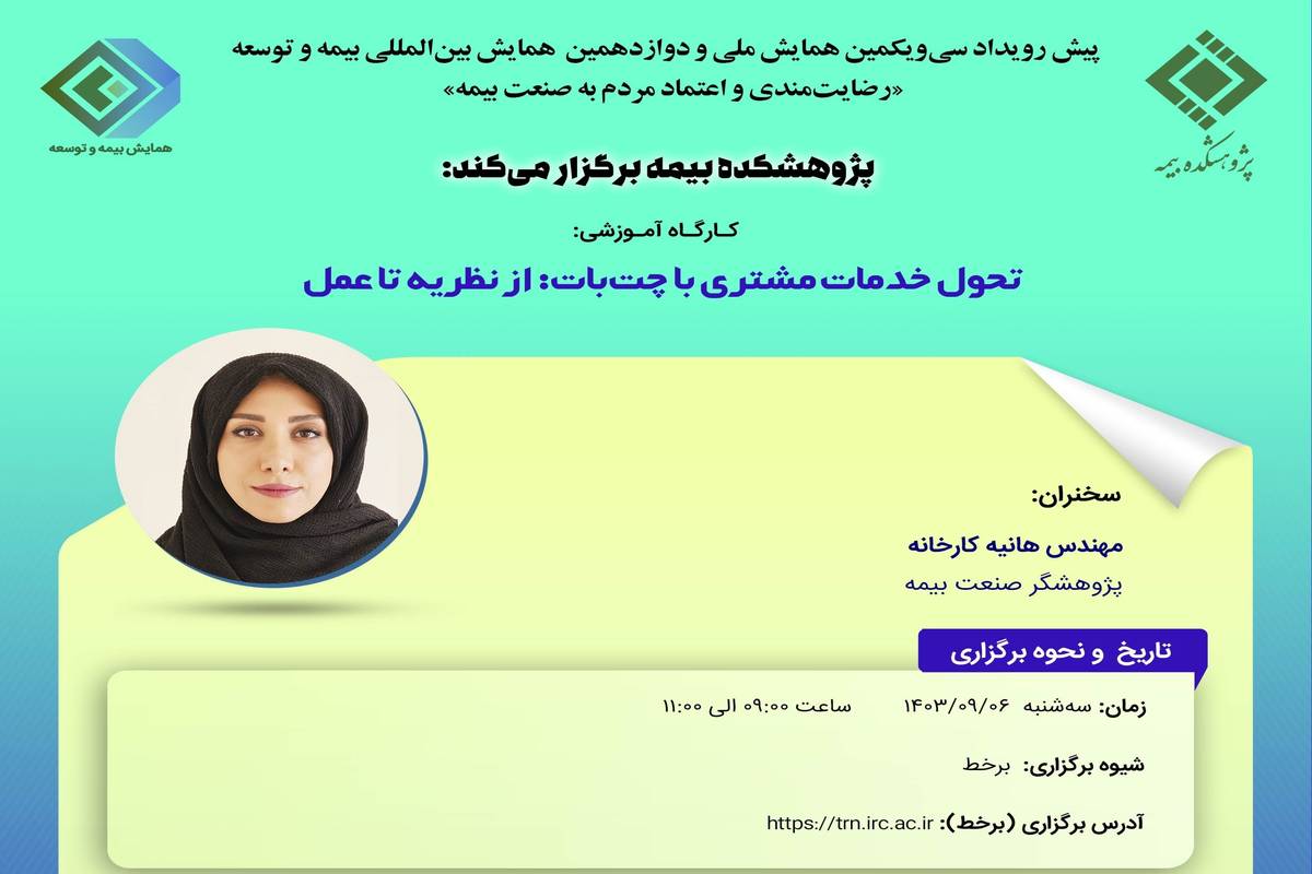 سومین کارگاه آموزشی پیش رویداد سی و یکمین همایش ملی و دوازدهمین همایش بین المللی بیمه و توسعه با موضوع «تحول خدمات مشتری با چتبات: از نظریه تا عمل» از ساعت ۰۹:۰۰ تا ۱۱:۰۰ روز سهشنبه ۶ آذر ۱۴۰۳ به صورت برخط از طریق سامانه مدیریت یادگیری پژوهشکده بیمه برگزار میشود.
