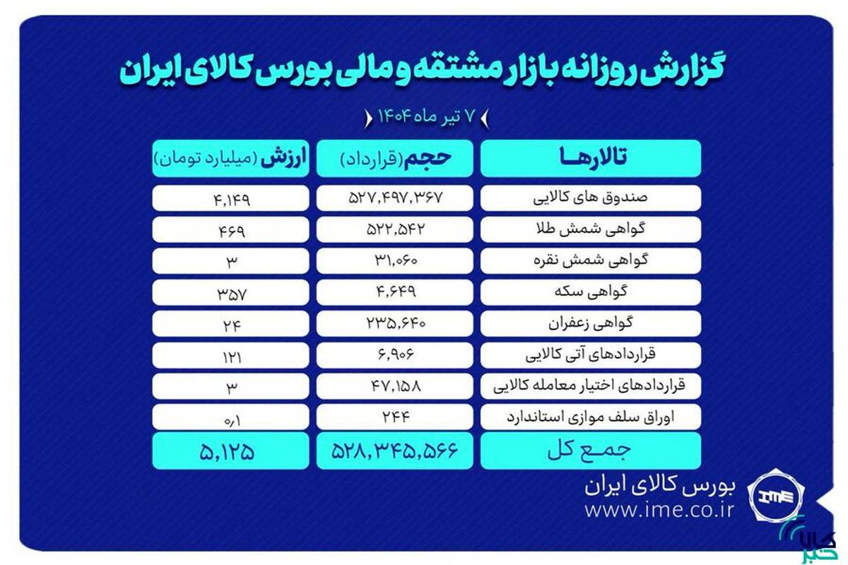 ارزش معاملات بازار مشتقه و مالی بورس کالا به ۵.۱ همت رسید