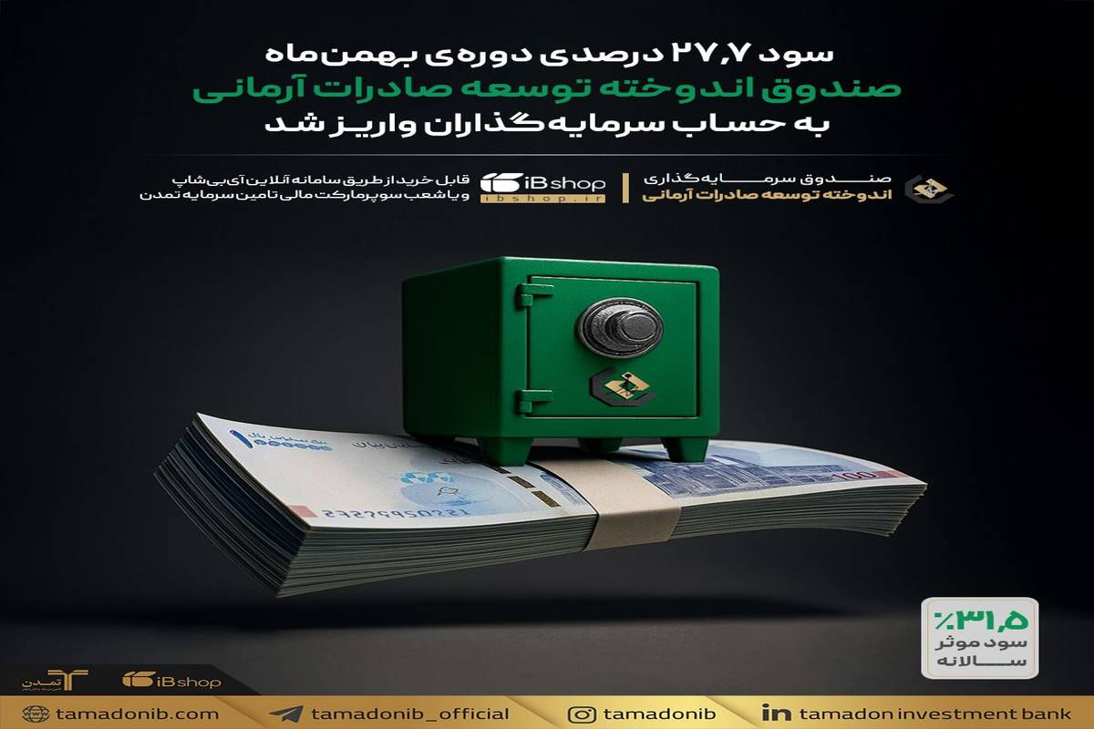 سود ۲۷.۷ درصدی دوره‌ی بهمن‌ماه صندوق اندوخته توسعه صادرات آرمانی واریز شد