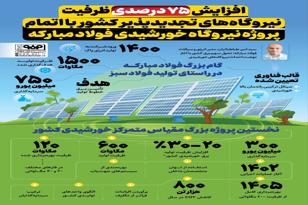 افزایش ۷۵ درصدی ظرفیت نیروگاههای تجدیدپذیر کشور با اتمام پروژه نیروگاه خورشیدی فولاد مبارکه
