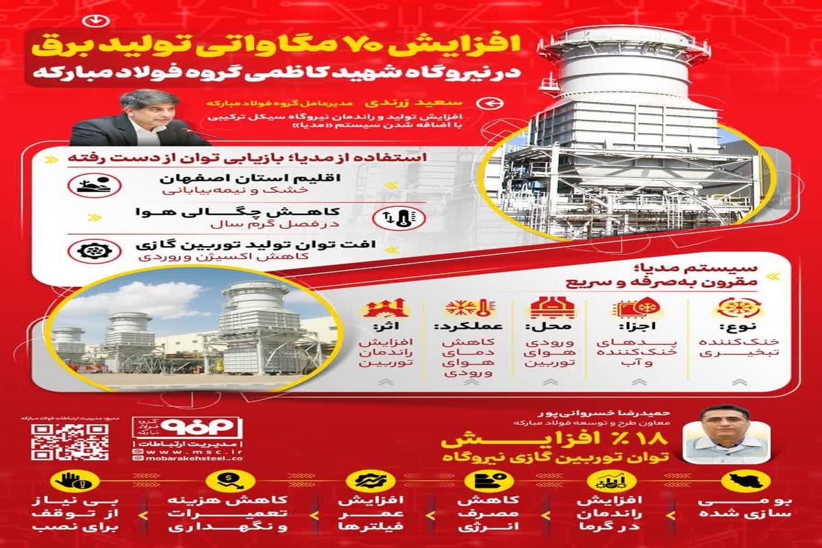 افزایش ۷۰ مگاواتی تولید برق در نیروگاه شهید کاظمی گروه فولاد مبارکه