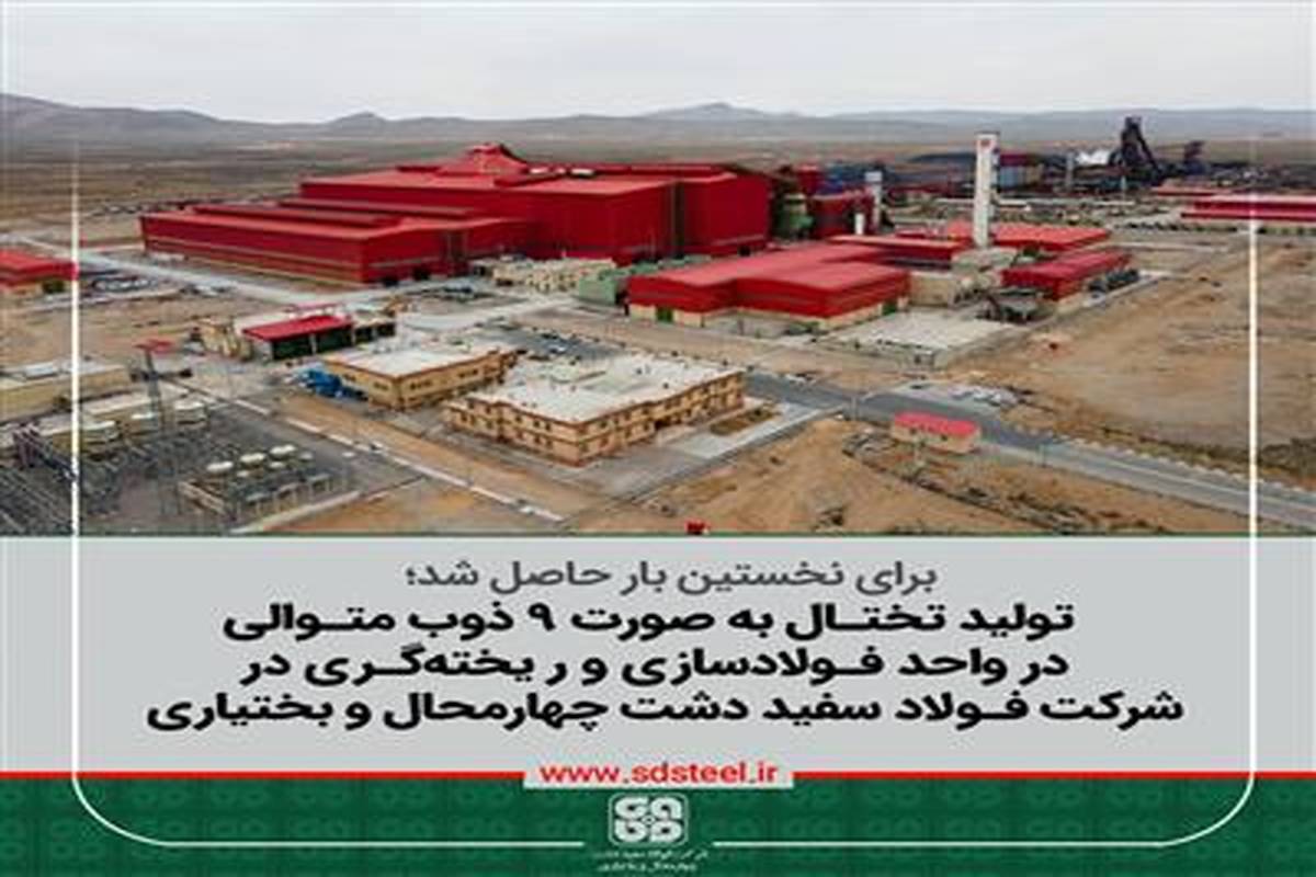 ر به نقل از روابــط عمومــی شرکت فولاد سفید دشت چهارمحال وبختیاری ، طهمورث جوانبخت، با اعلام این خبر، اظهار کرد: در ادامه دســتاوردهای اخیر شـرکت فـولاد سفیددشـت چهارمحال وبختیـاری، روز سه شـنبه چهـارم آذرمـاه کارکنـان واحد فولادسـازی و ریخته گری این شـرکت موفق شـدند عملیات تولید تختـال را به صـورت ۹ ذوب متوالـی بـا موفقیـت بـه انجام رسـانند.