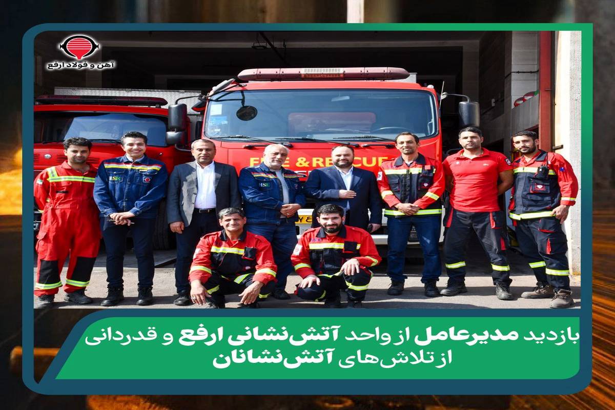 بازدید از واحد آتشنشانی شرکت آهن و فولاد ارفع با حضور مهندس مهرینژاد، مدیرعامل شرکت و جمعی از مدیران و کارکنان انجام شد. در این بازدید، از زحمات و تلاشهای ارزشمند آتشنشانان شرکت که نقش حیاتی در حفظ ایمنی و امنیت مجموعه دارند، قدردانی شد.
