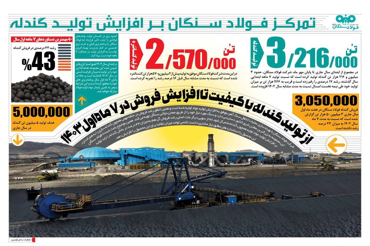استراتزی فولاد سنگان،  رشد کمی و کیفی تولید گندله