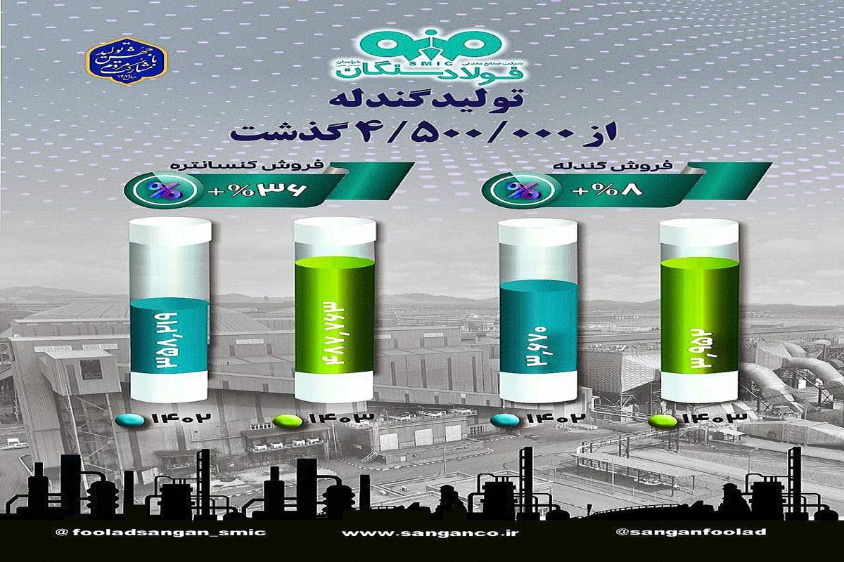 از سوی دیگر، تولید تجمعی گندله این شرکت از ابتدای بهرهبرداری تاکنون، در حال عبور از مرز ۲۶ میلیون تن است. این رقم نشاندهنده ظرفیت بالای فولاد سنگان در تأمین مواد اولیه مورد نیاز صنعت فولاد کشور است. علاوه بر این، تولید تجمعی کنسانتره سنگ آهن این شرکت نیز از ابتدای بهرهبرداری تاکنون، به مرز ۱۲ میلیون تن رسیده است.