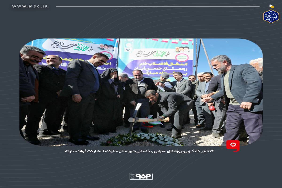 پروژههای عمرانی و خدماتی شهرستان مبارکه روز یکشنبه ۲۱ بهمنماه ۱۴۰۳، به مناسبت دهه مبارک فجر انقلاب اسلامی با سرمایهگذاری فولاد مبارکه و با حضور ایوب درویشی معاون سیاسی و اجتماعی استانداری اصفهان، زهرا سعیدی نماینده مردم شریف شهرستان مبارکه در مجلس شورای اسلامی، محمدیاسر طیبنیا مدیرعامل فولاد مبارکه، محمدجواد براتی مدیر روابط عمومی فولاد مبارکه، حمیدرضا خسروانیپور معاون طرح و توسعه فولاد مبارکه و مصطفی رحیمی شهردار مبارکه افتتاح و کلنگزنی شد.