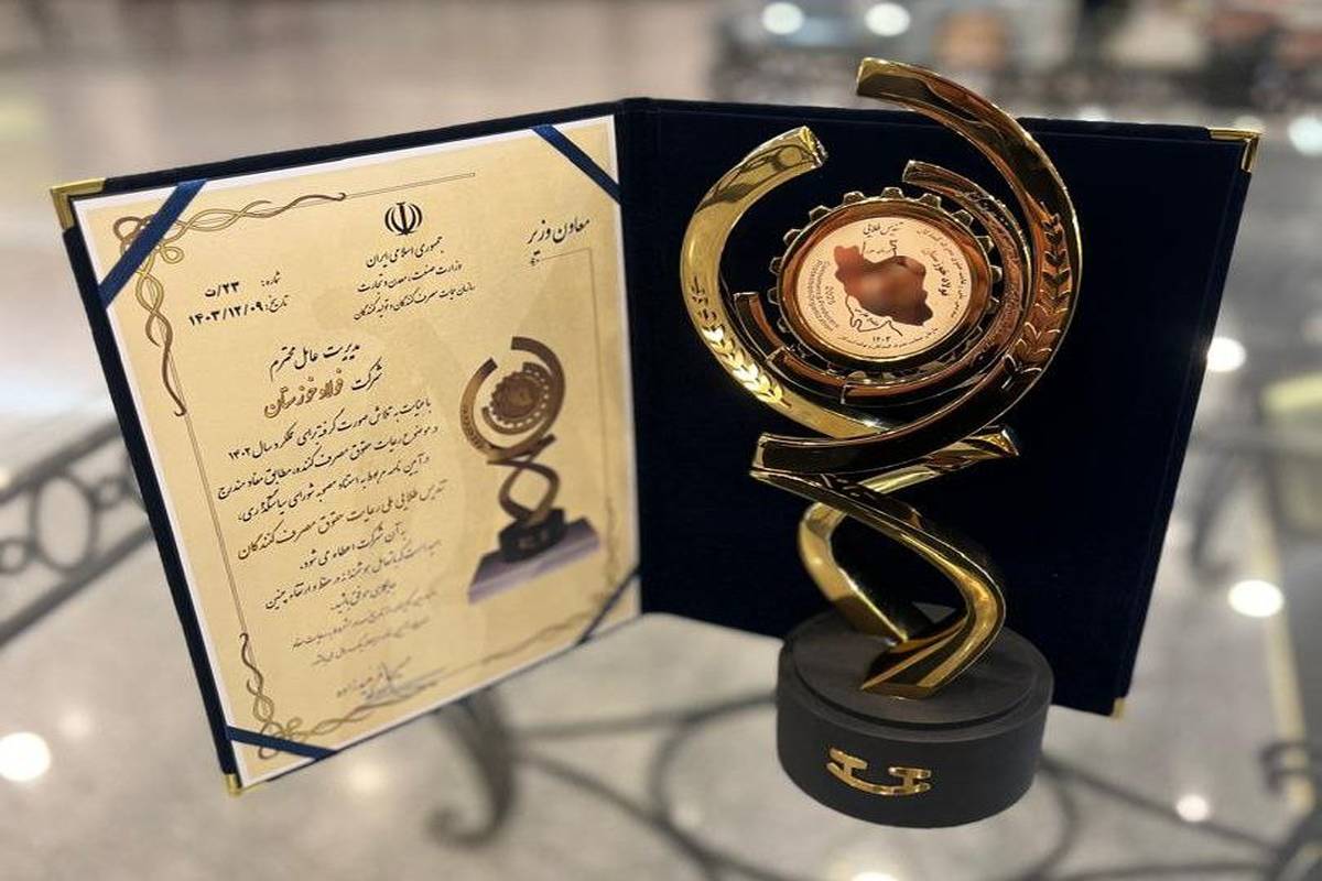 در این مراسم، لوح و تندیس زرین رعایت حقوق مصرفکنندگان به عنوان بالاترین سطح تندیس، از سوی سازمان ملی حمایت مصرفکنندگان و تولیدکنندگان، به امین ابراهیمی مدیرعامل شرکت فولاد خوزستان اهدا شد.