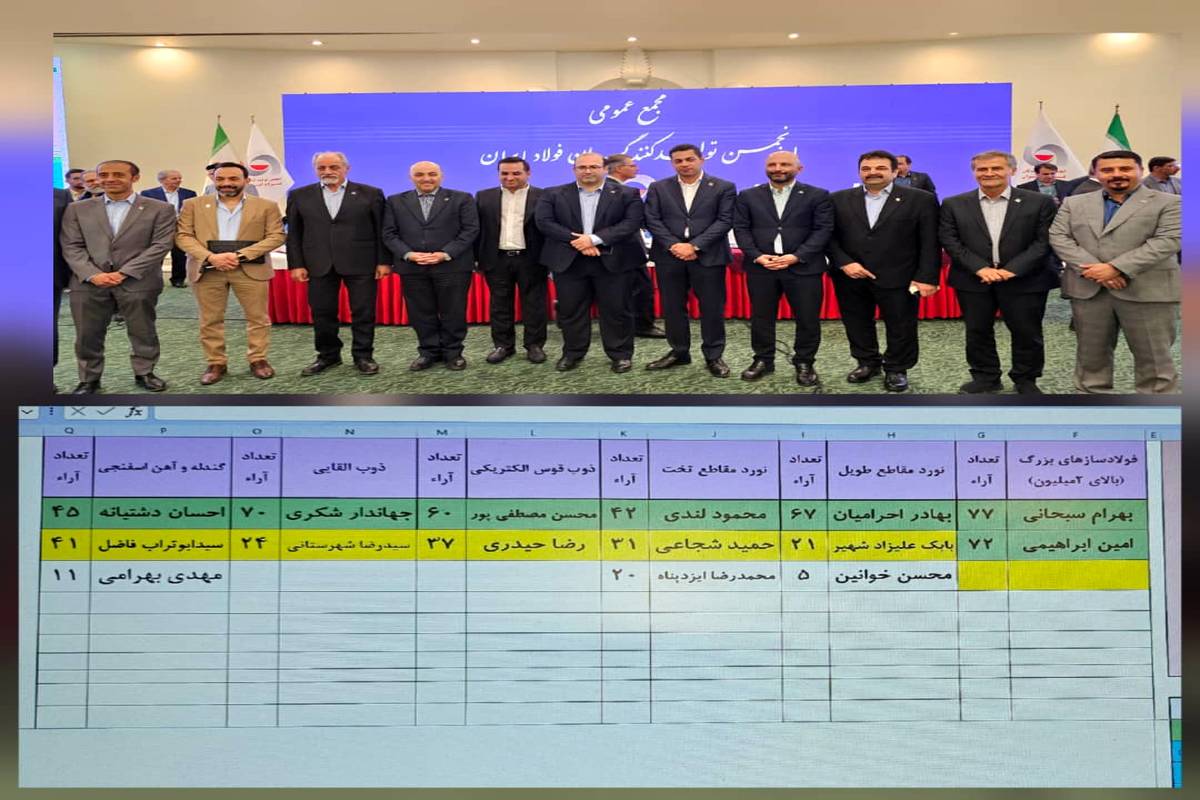 انتخابات اعضای هیئت مدیره انجمن نیز در دستور کار مجمع عادی امسال قرار داشت که پس از رقابت 15 کاندیدا، اشخاص زیر به عنوان اعضای اصلی هیئت مدیره انجمن تولیدکنندگان فولاد ایران معرفی شدند: