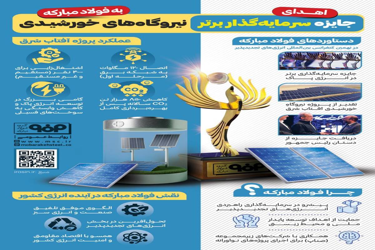 اهدای جایزه سرمایه‌گذار برتر نیروگاه‌های خورشیدی به فولاد مبارکه