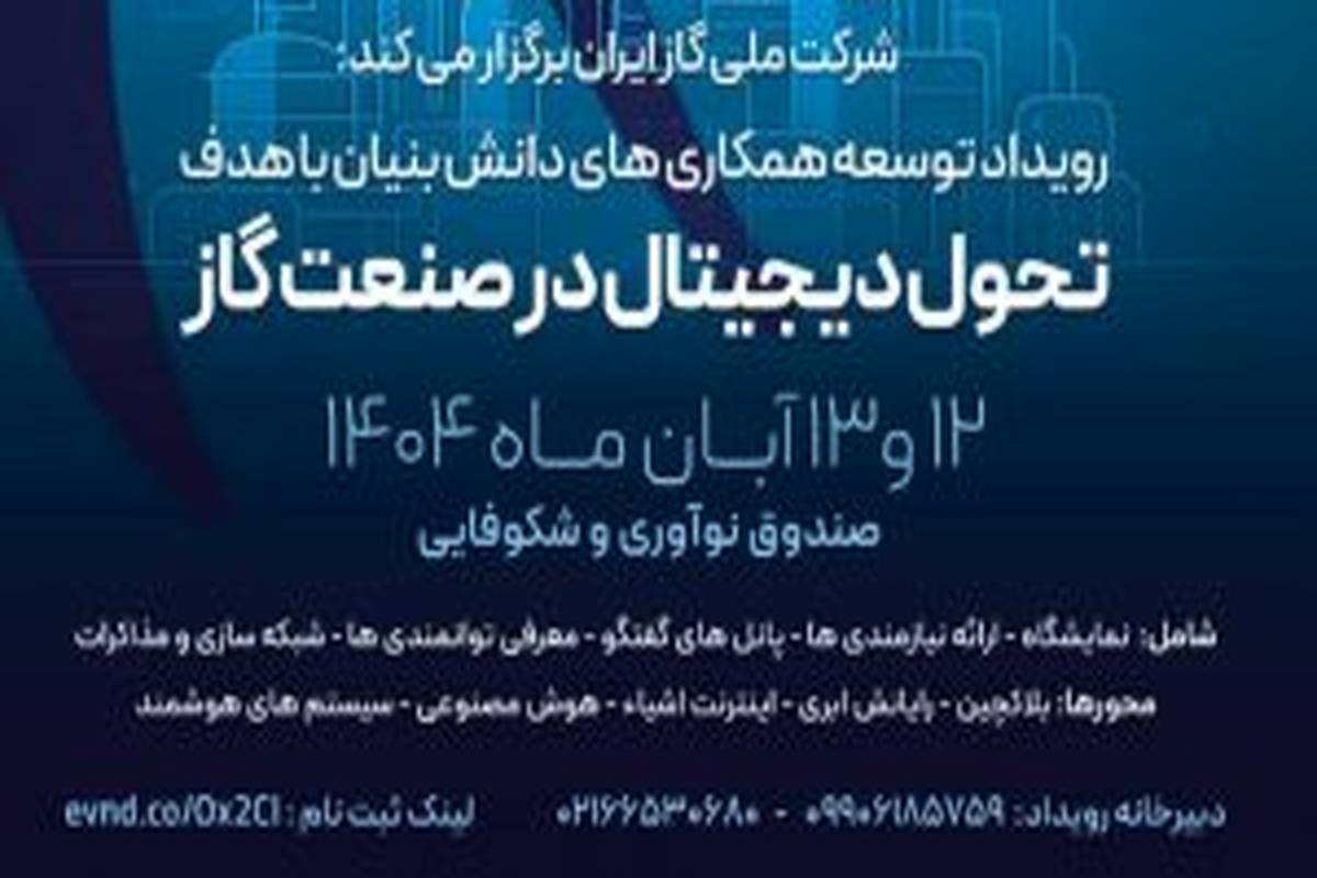 به نقل از  روابط عمومی شرکت ملی گاز ایران ، سعید توکلی با اعلام این خبر، گفت: شرکت ملی گاز ایران در راستای سیاست‌های ابلاغی مقام معظم رهبری، دولت چهاردهم و وزارت نفت و با هدف تبیین بهتر مسیر حرکت برای تحقق اهداف مرتبط با برنامه هفتم پیشرفت، نخستین رویداد تحول دیجیتال در صنعت گاز کشور را با محوریت توسعه بهره‌مندی از هوش مصنوعی، در روزهای ۱۲ و ۱۳ آبان‌ماه برگزار می‌کند.