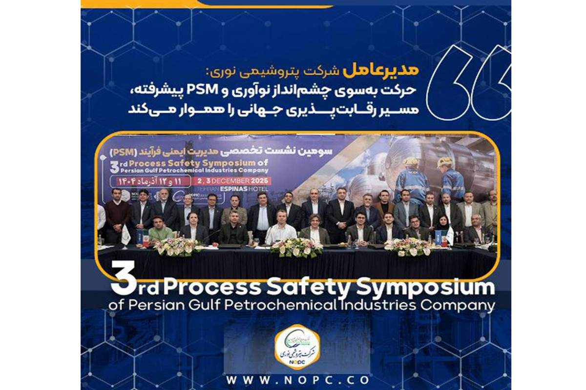 مسئولیت اجتماعی و روابطعمومی شرکت پتروشیمی نوری، غلامرضا جمشیدی در سومین نشست تخصصی ایمنی فرایند گروه صنایع پتروشیمی خلیجفارس به میزبانی شرکت پتروشیمی نوری، با بیان اینکه «نگاه ما به مجموعه PSM یک نگاه چشماندازمحور است»، گفت: «در نوری دستاوردهای مهمی در حوزه مدیریت ایمنی فرایند حاصل شده و این مدل توانسته مسیر بهینهسازی و تخصیص هدفمند منابع انسانی و مالی را روشنتر و در نهایت به سودآوری پایدار شرکت کمک کند.»
