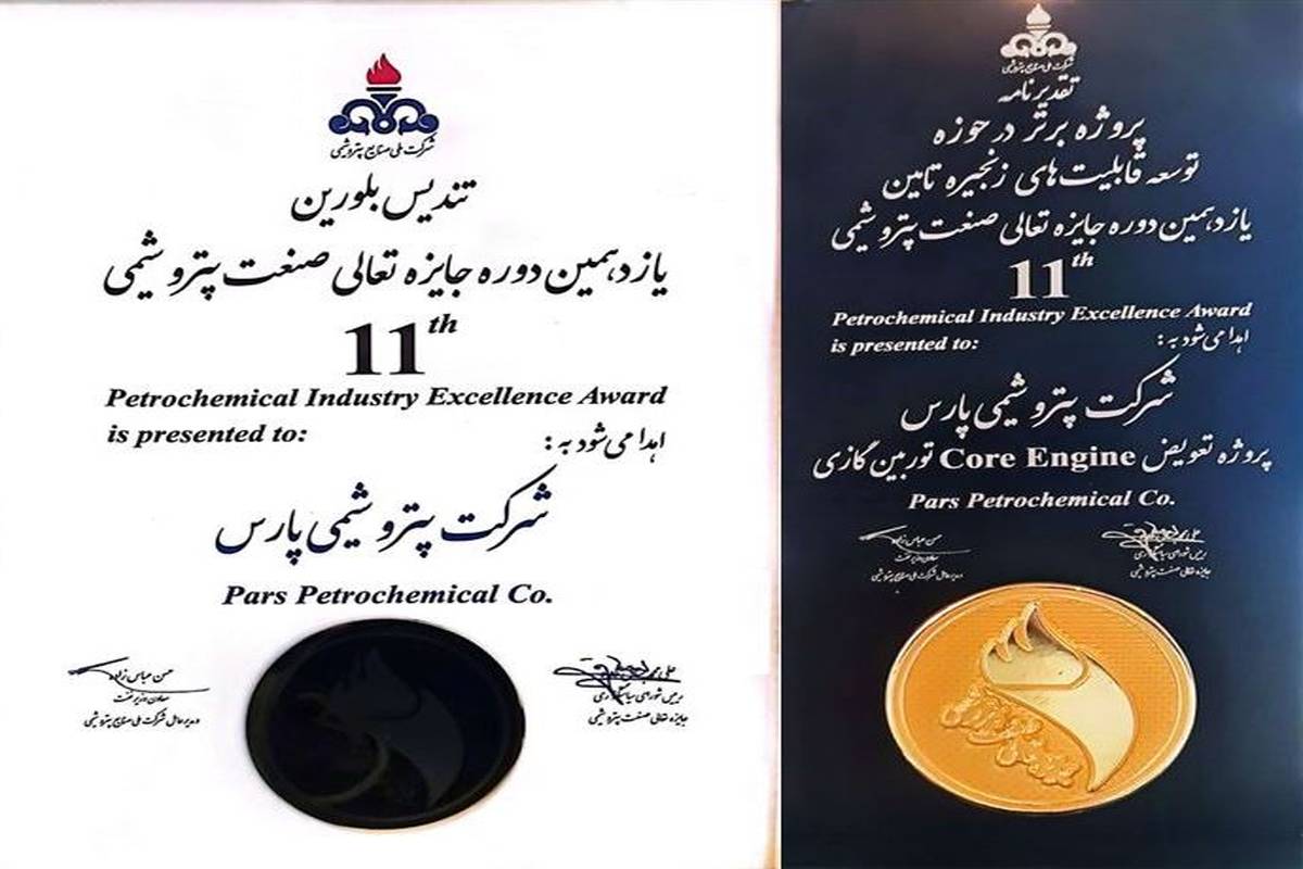 عنوان برتر و تندیس بلورین یازدهمین جایزه تعالی صنعت پتروشیمی ایران به شرکت پتروشیمی پارس رسید.