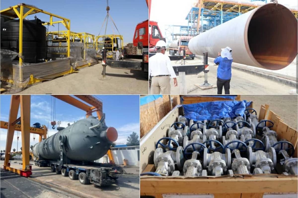 این تجهیزات که شامل لوله های زیرزمینی 56 اینچ و 76 اینچ خطوط برج خنک کننده ، درامهای سنگین واحد پروسس ، شیرهای دستی مختلف پروژه، سیستم دوزینگ واحد متانول و برج خنک کننده، سیستم های خنک کننده HVAC، لوله ها و اتصالات پروژه، پمپ های واحد پروسس و همچنین بخشی از سیستم های روشنایی سایت می باشند پس از بارگیری و حمل از مبادی ساخت در داخل و خارج از کشور هم اکنون تحویل سایت پروژه شده اند و برنامه ریزی لازم برای نصب تجهیزات در حال انجام است که با آغاز نصب تجهیزات وارد شده به سایت، شاهد پیشرفت و سرعت مناسب در روند اجرای پروژه در سال "سرمایه گذاری برای تولید" خواهیم بود.